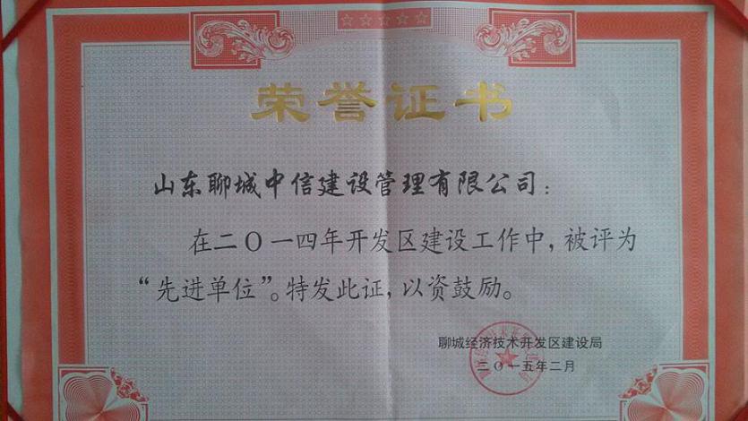 公司榮獲2014年度開發(fā)區(qū)建設(shè)系統(tǒng)“先進單位”